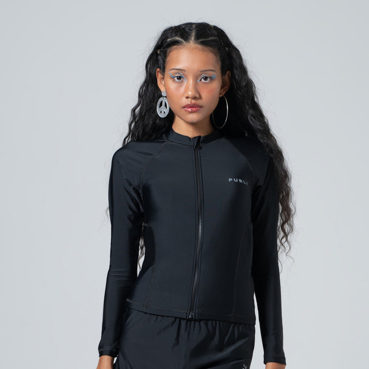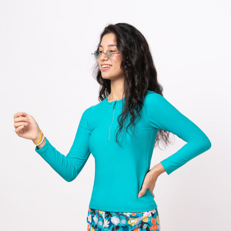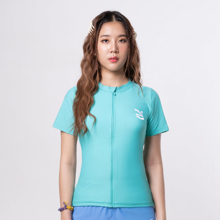 SOLID VIRIDIAN ZIPPY RASHGUARD